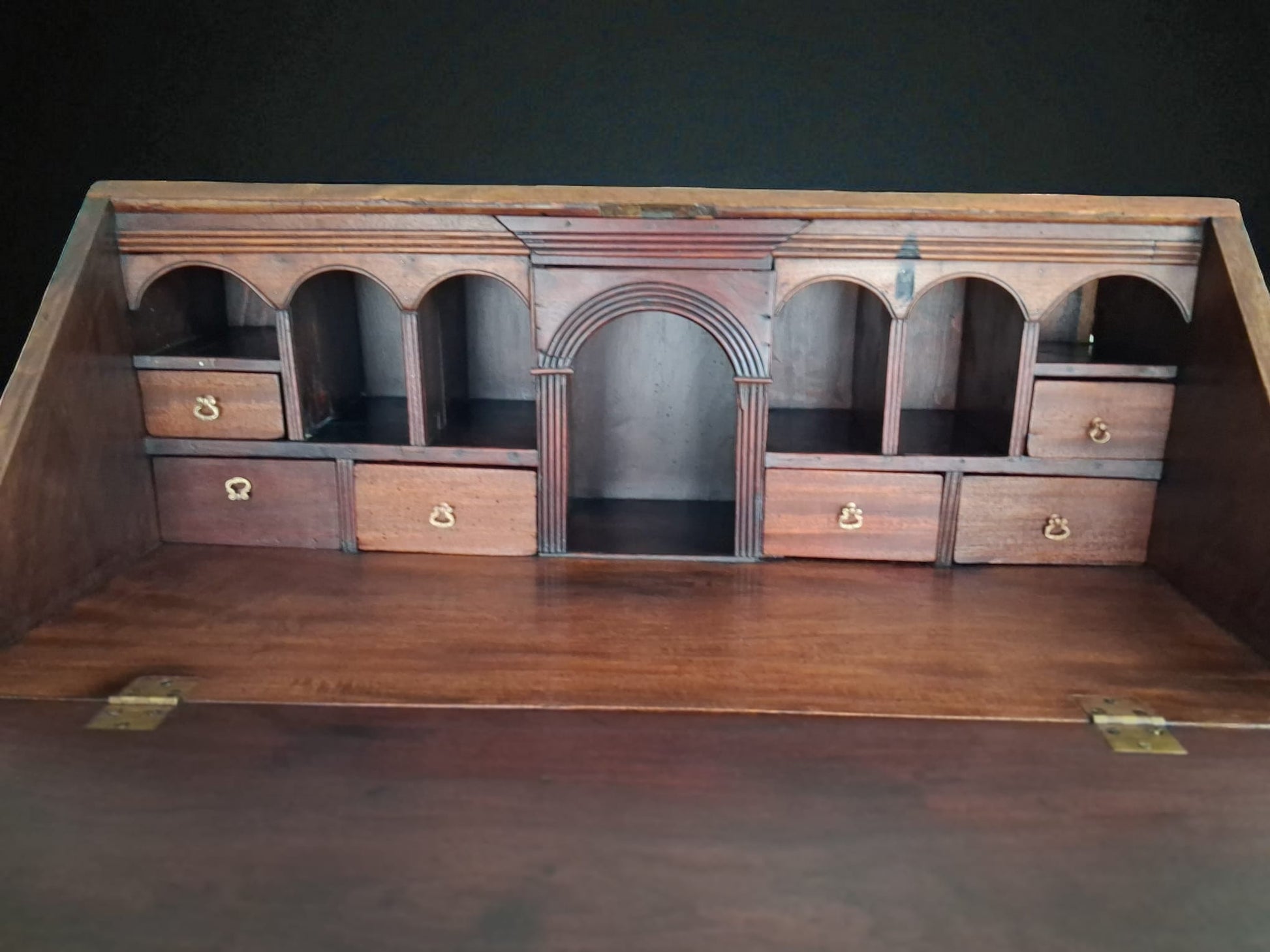 Este extraordinario secreter fue elaborado a mano en Francia entre 1790 y 1810, y es un magnífico ejemplo del mobiliario del período Luis XVI a principios del Imperio. Construido en madera maciza de caoba, esta pieza no ha sido restaurada, conservando su pátina original y los signos naturales del paso del tiempo.